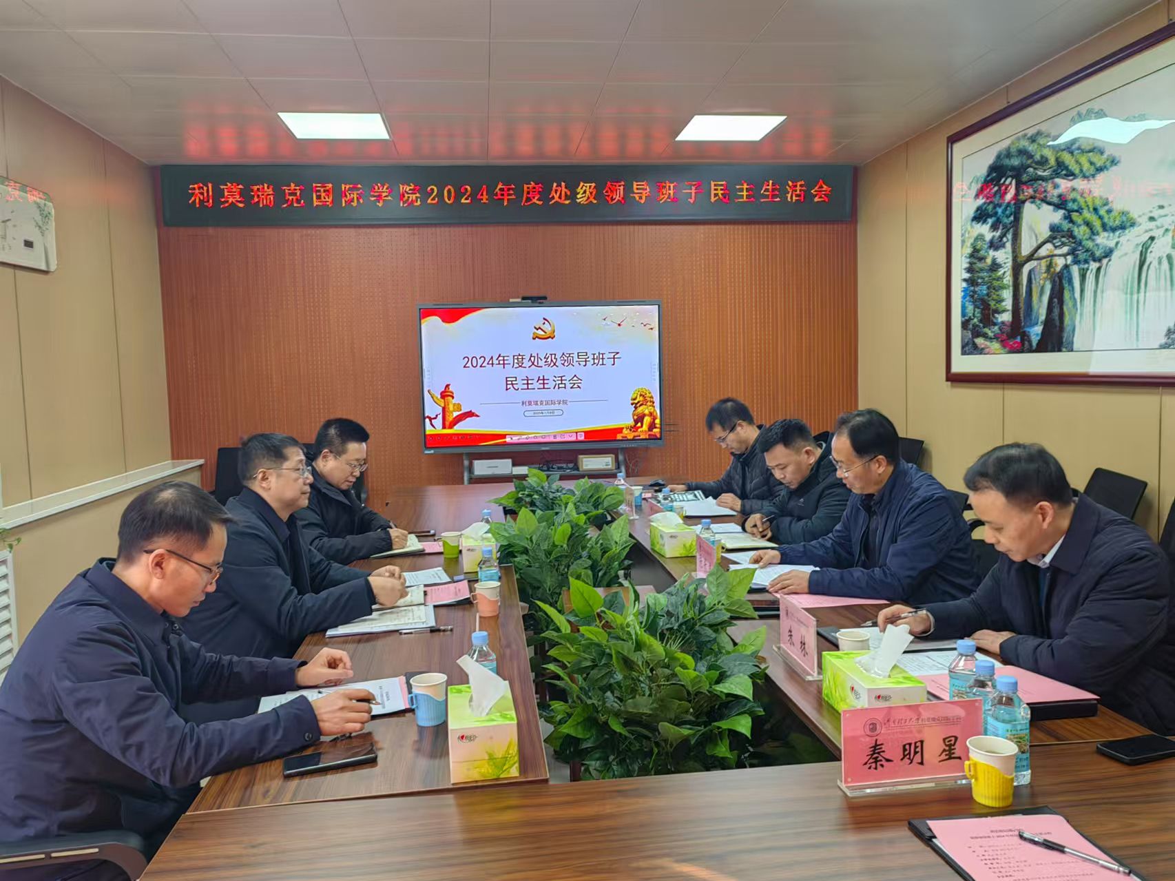 1月8日下午,利莫瑞克国际学院在学院202会议室召开2024年度处级领导班子民主生活会。副校长边亚东作重要讲话,校纪委副书记、党委巡察办主任尚敏、校党委组织部副部长李从强莅会指导,学院全体党员参会。会议由学院党委书记张长森主持。