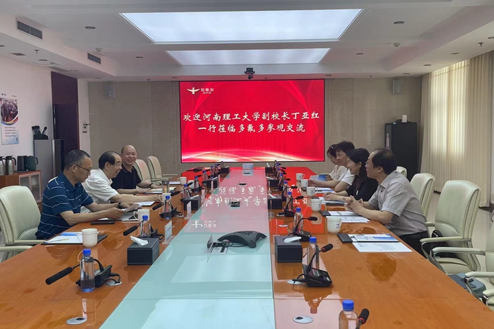 多氟多(焦作)新能源科技有限公司董事长李世江和相关负责人向丁亚红热情介绍了公司的基本情况,以及近年来与我校开展多方面合作的情况,重点介绍了双方共建产业学院、协同育人的成效,对我校与公司开展的各项合作交流予以了充分肯定并高度评价了我校的人才培养质量,希望与我校开展更进一步的深度合作。