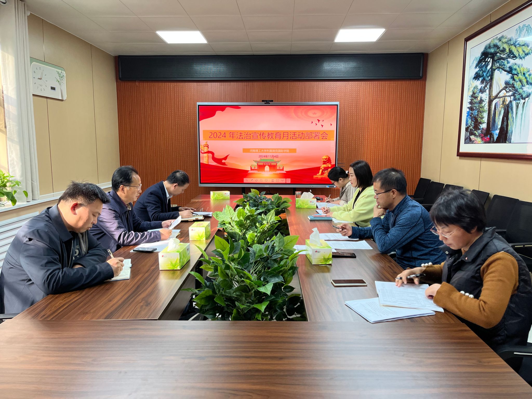 在部署会上,学院党委书记张长森传达了《关于开展2024 年法治宣传教育月活动的通知》(宣通〔2024〕11号)文件精神,要求以本次活动为契机,学习贯彻党的二十届三中全会精神,践行习近平法治思想,推动普法宣传教育真正融入教职工日常生活,不断提高依法治校工作水平,为建设高水平国际教育事业提供强有力的法治保障。