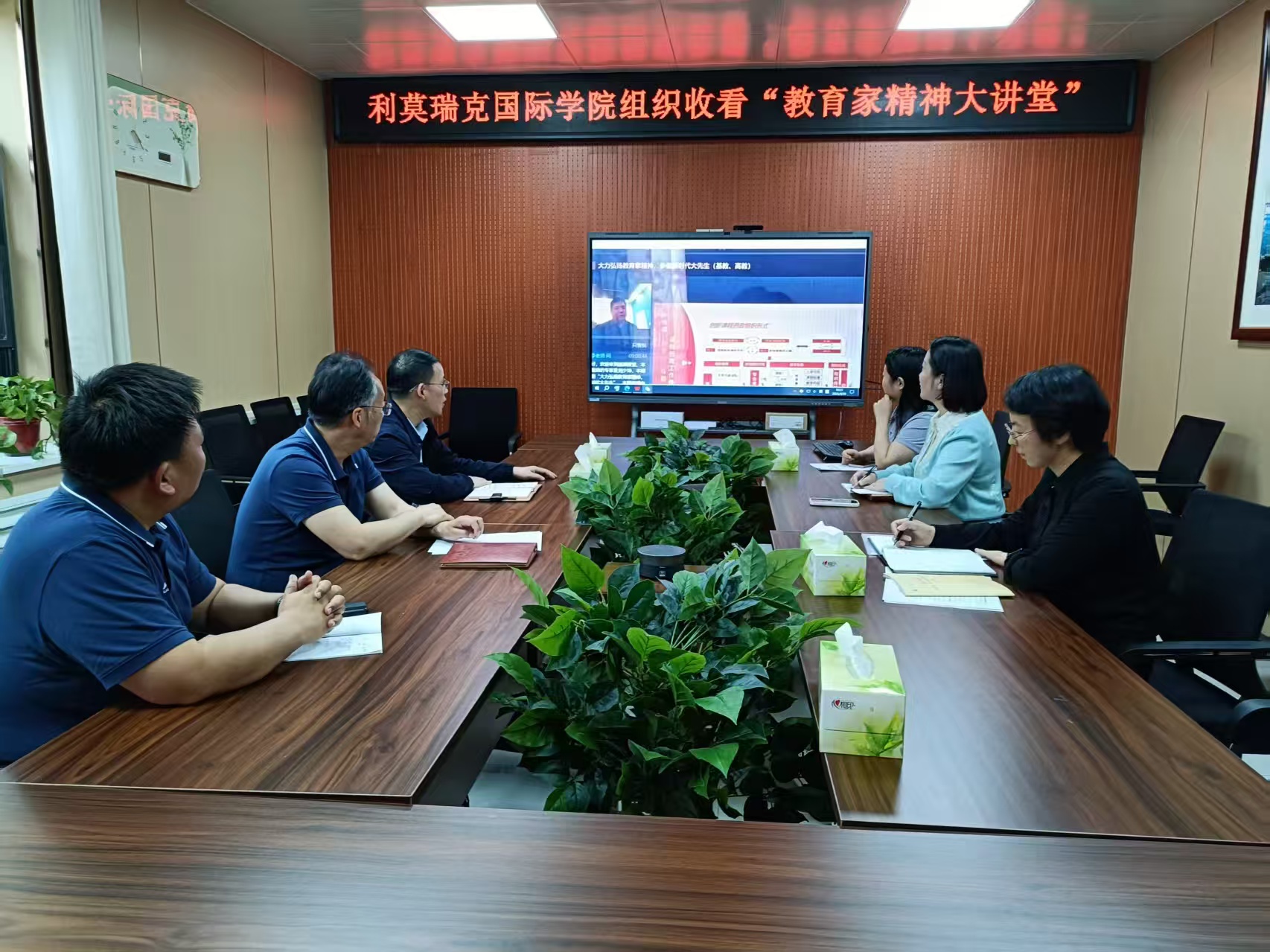 学院党委书记张长森全程观看,并在总结讲话中提出三点要求:一是提高政治站位,深化思想认识。教育家精神是新时代教师的立身之本,全体教职工要深刻领会其内涵,将“为党育人、为国育才”融入教育教学全过程,以高度的政治责任感落实立德树人根本任务。二是坚持知行合一,强化实践担当。全体教职工要将教育家精神转化为育人实践,以课程思政创新、教学方法改革为抓手,推动教育理念与国际化办学特色深度融合,培养具有批判性思维和国际竞争力的复合型人才。三是强化师德引领,涵养育人生态。学院将持续完善师德师风建设长效机制,树立“以德立身、以德施教”的标杆,营造尊师重教、崇智尚学的校园文化氛围。