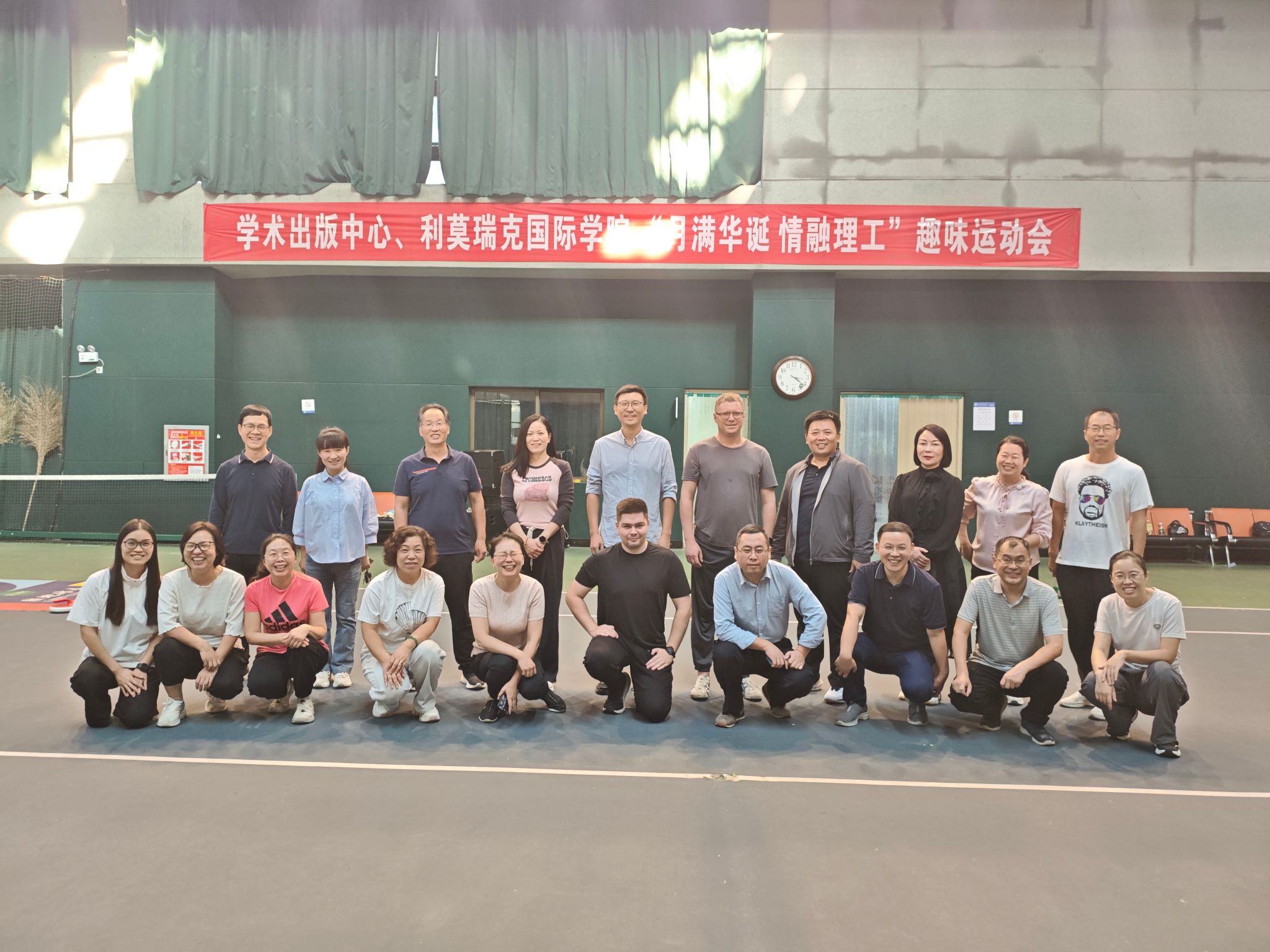 为迎接国庆、丰富教职工生活,利莫瑞科国际学院与学术出版中心于10月30日下午在学校体育馆网球馆联合举办“迎十一”趣味运动会。现场气氛热烈,笑语不断。