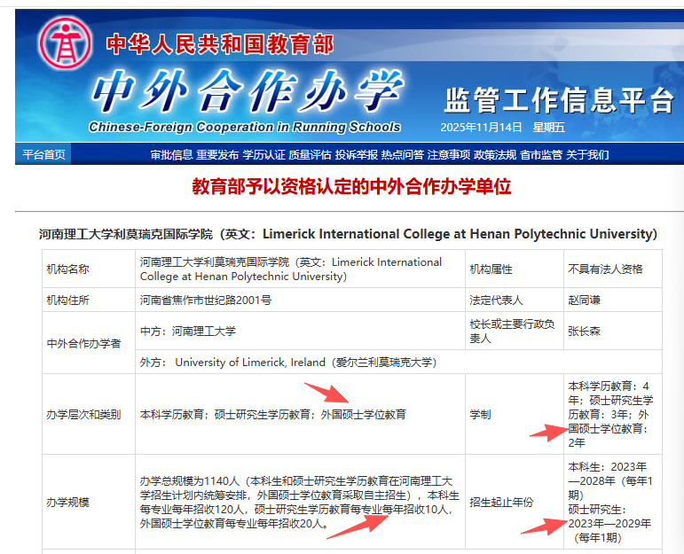 近日,经中华人民共和国教育部批准,河南理工大学与爱尔兰利莫瑞克大学合作举办的利莫瑞克国际学院正式获批开展外国硕士学位教育项目。这标志着两校在国际化高层次人才培养方面迈出重要一步。