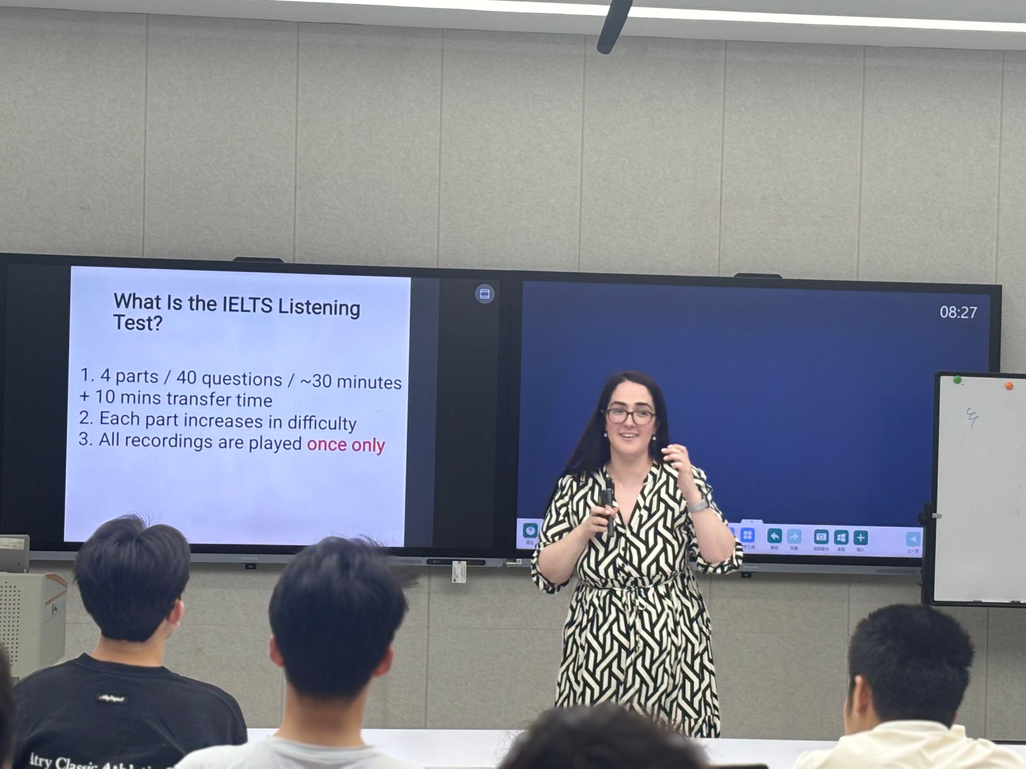 为全面提升学生英语综合应用能力,更好适应全英文专业课程的学习要求,利莫瑞克国际学院英语语言提升专项计划课程授课于6月1日正式启动。本课程面向2024级本科全体新生,持续至6月15日,创新融合外教沉浸式教学与智慧教室相结合,构建“学用一体”的语言学习新模式。课程一经开启,便迅速点燃学生的学习热情,为英语能力的快速提升注入强劲动能。
